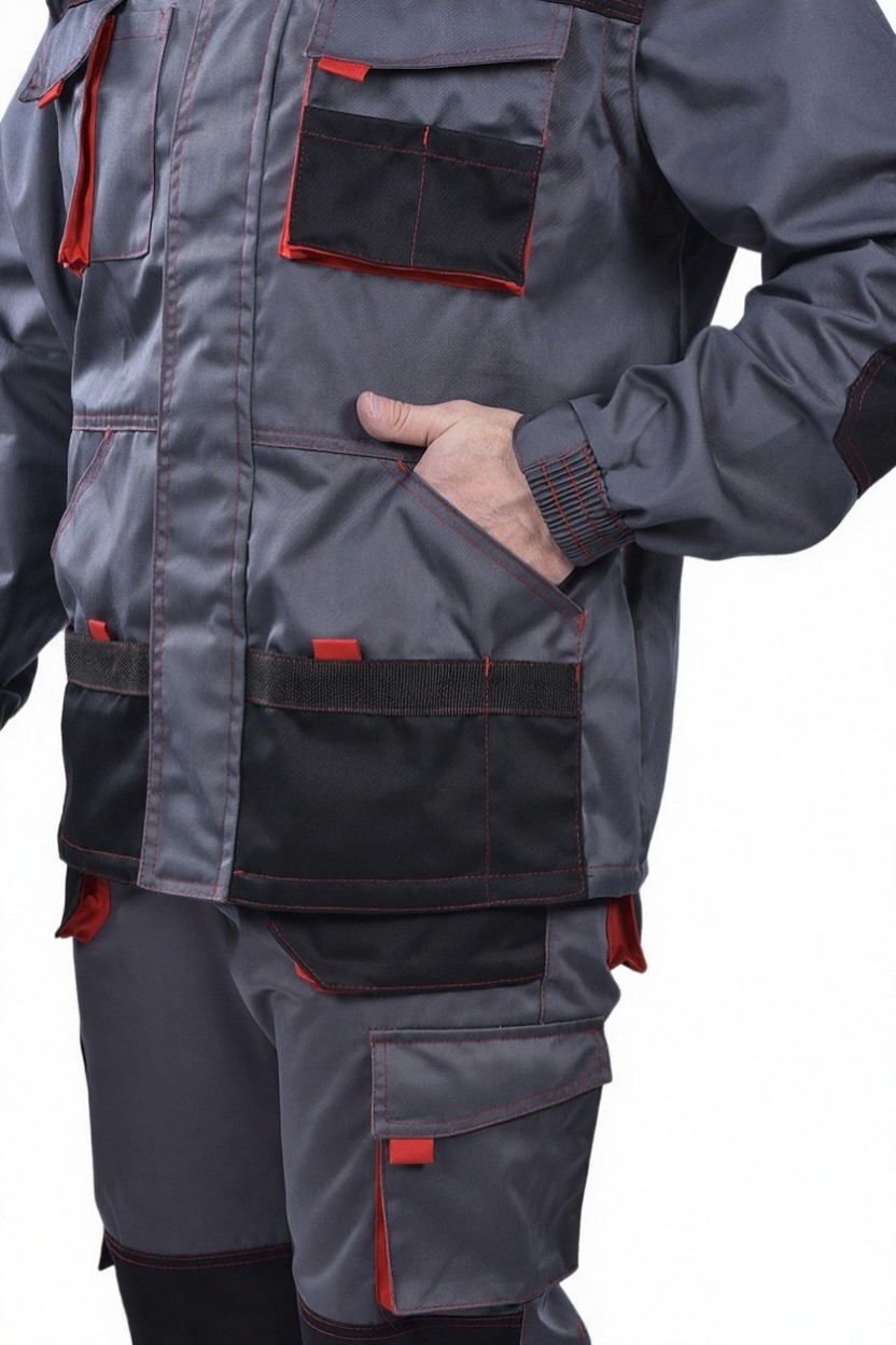 основной – серый, отделка – черная, красная